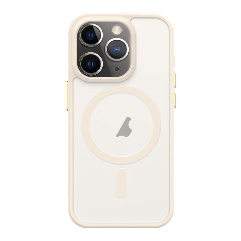 For iPhone 11 Pro Max Metal Button Skin Feel Matte MagSafe Shockproof Phone Case(White)