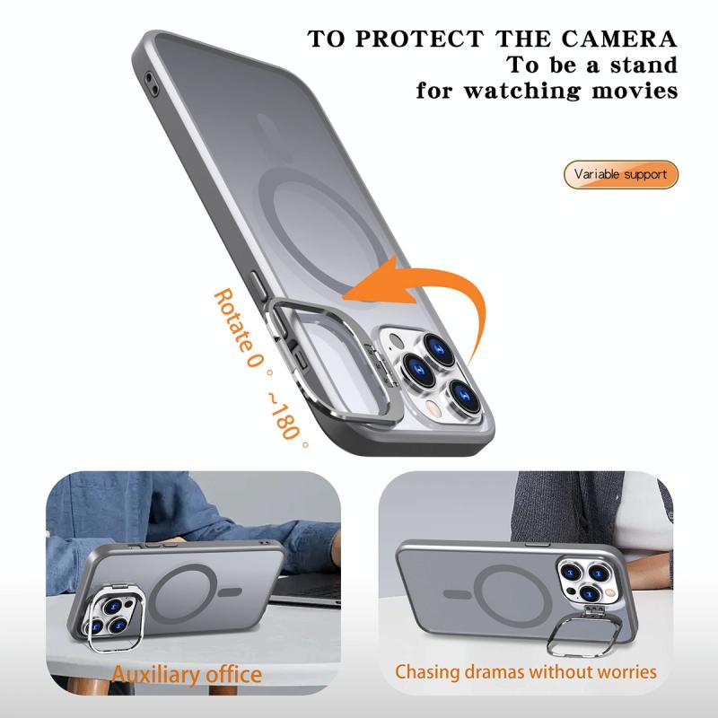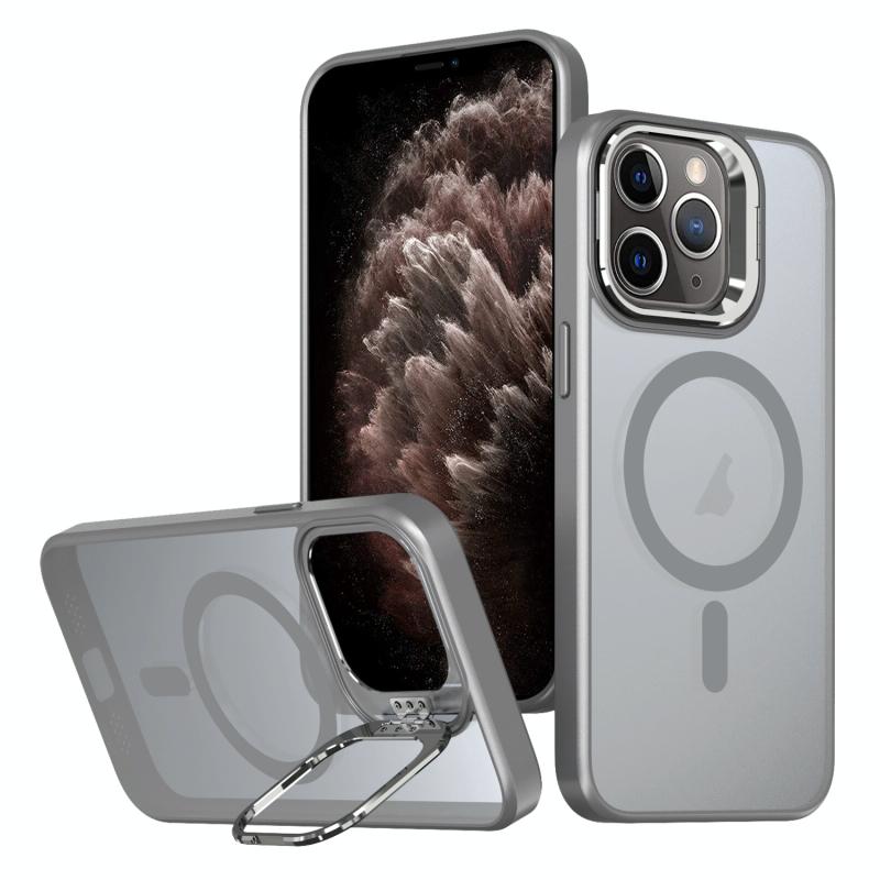 For iPhone 11 Pro Max Metal Invisible Camera Holder MagSafe Magnetic Phone Case(Grey)