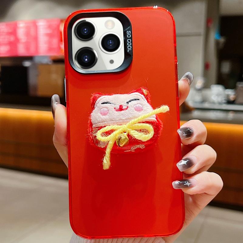 For iPhone 11 Pro Max New Year Lion Dance Plush Doll Phone Case(Lucky Cat)