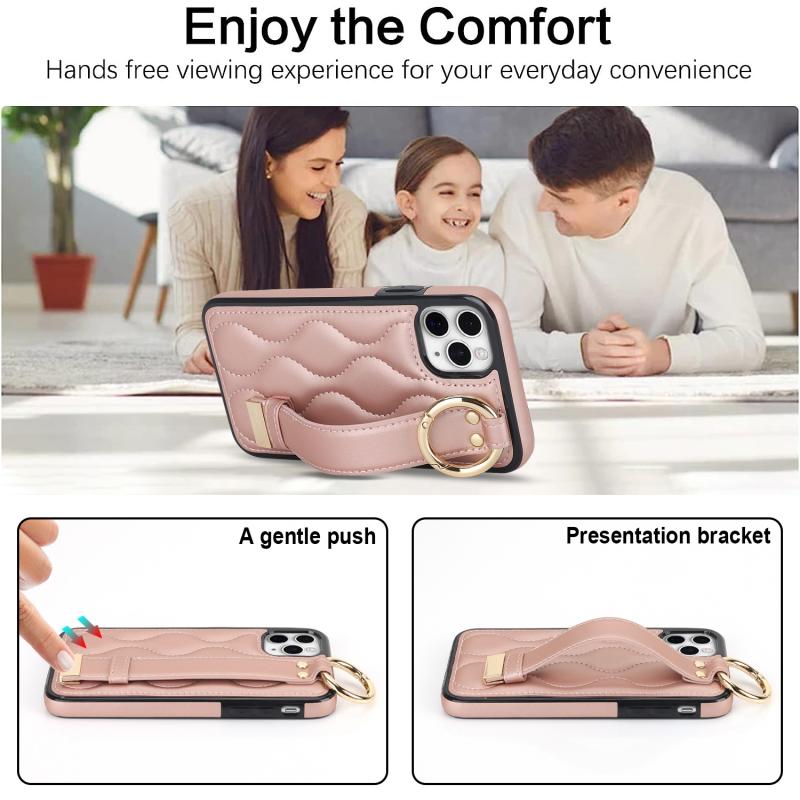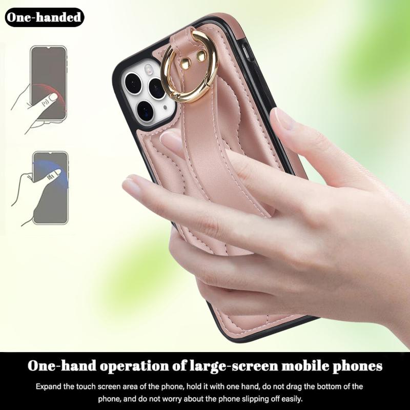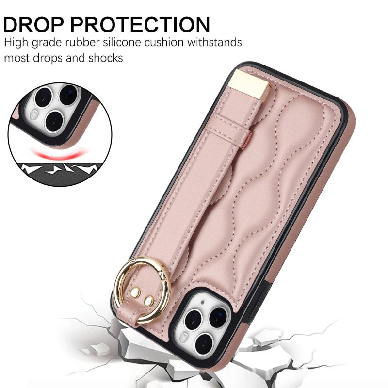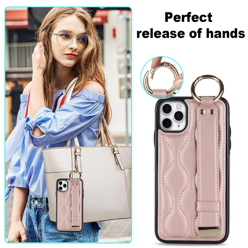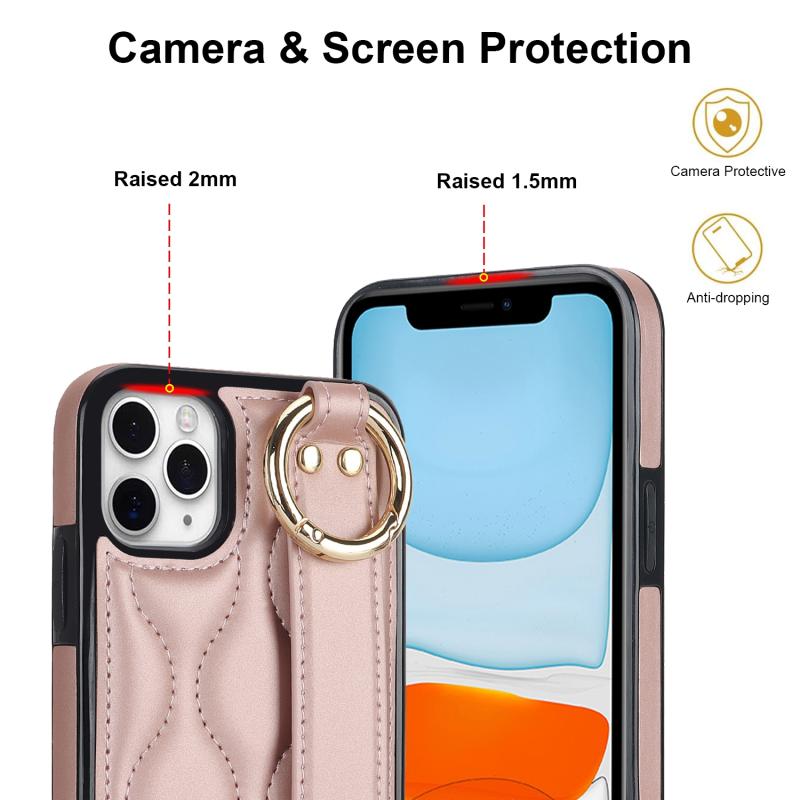 For iPhone 11 Pro Max Non-slip Full Coverage Ring PU Phone Case with Wristband(Rose Gold)