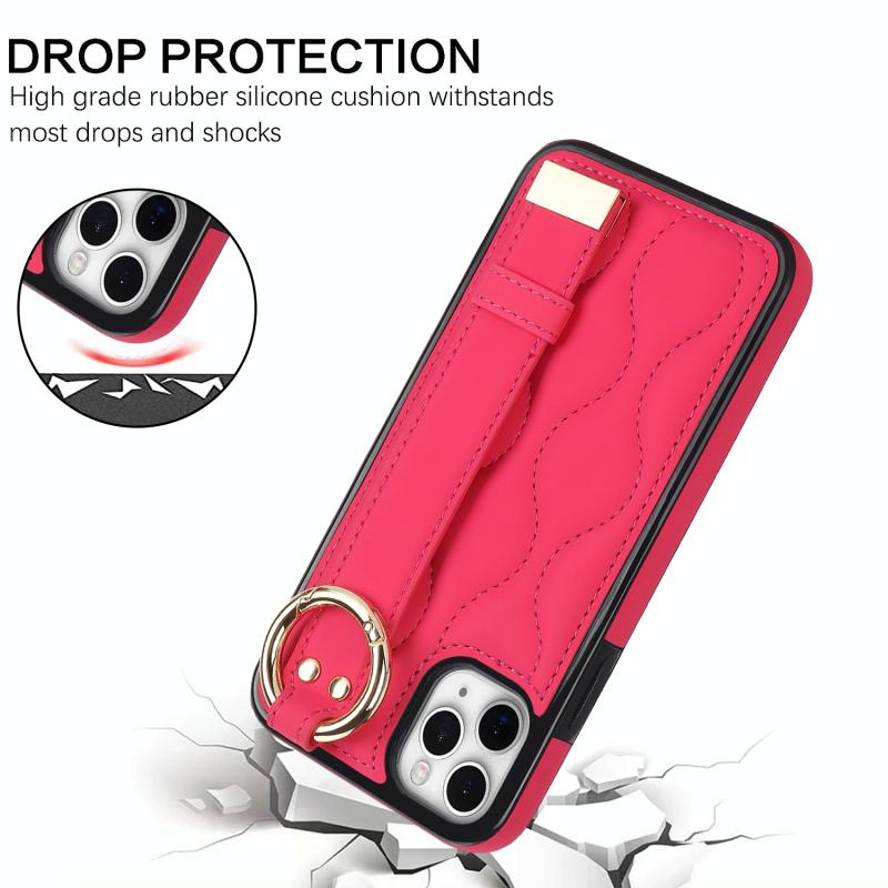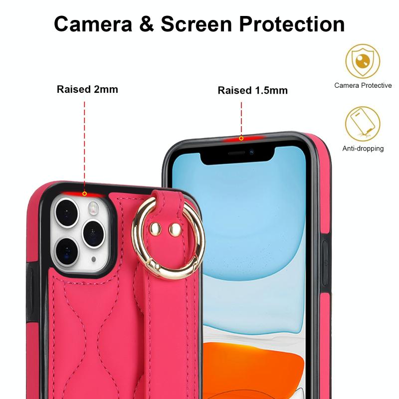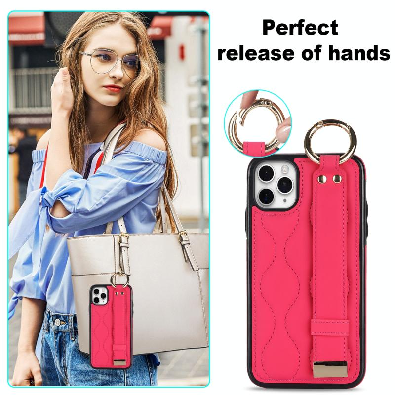 For iPhone 11 Pro Max Non-slip Full Coverage Ring PU Phone Case with Wristband(Rose Red)