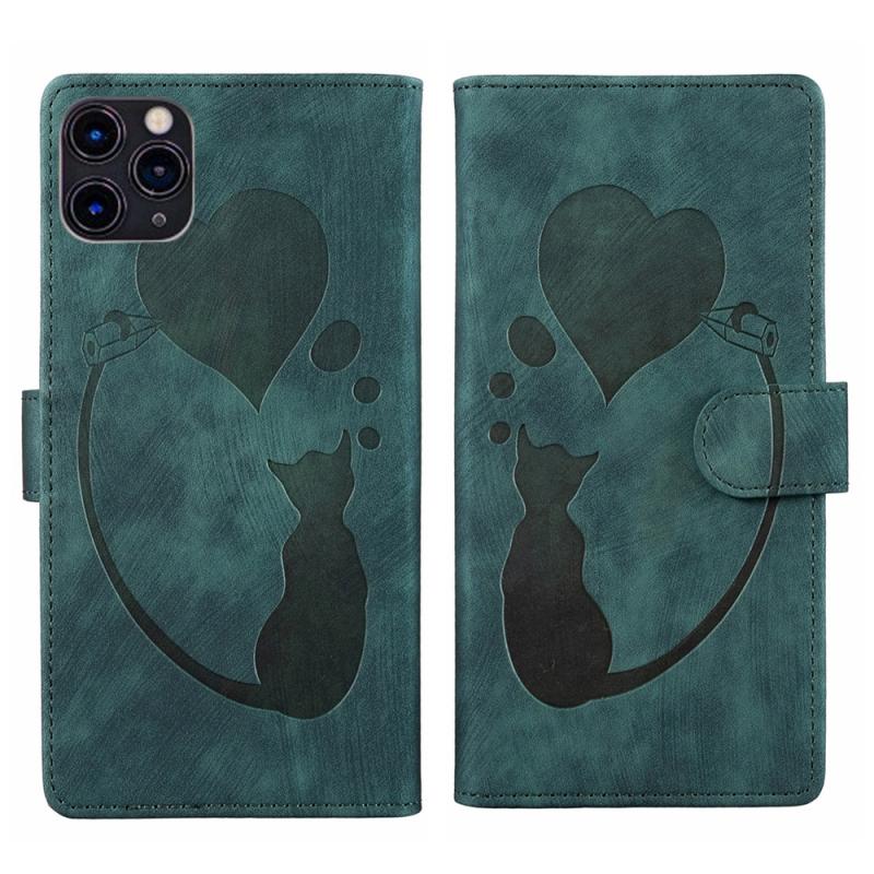 For iPhone 11 Pro Max Pen Heart Cat Embossed Leather Phone Case(Green)