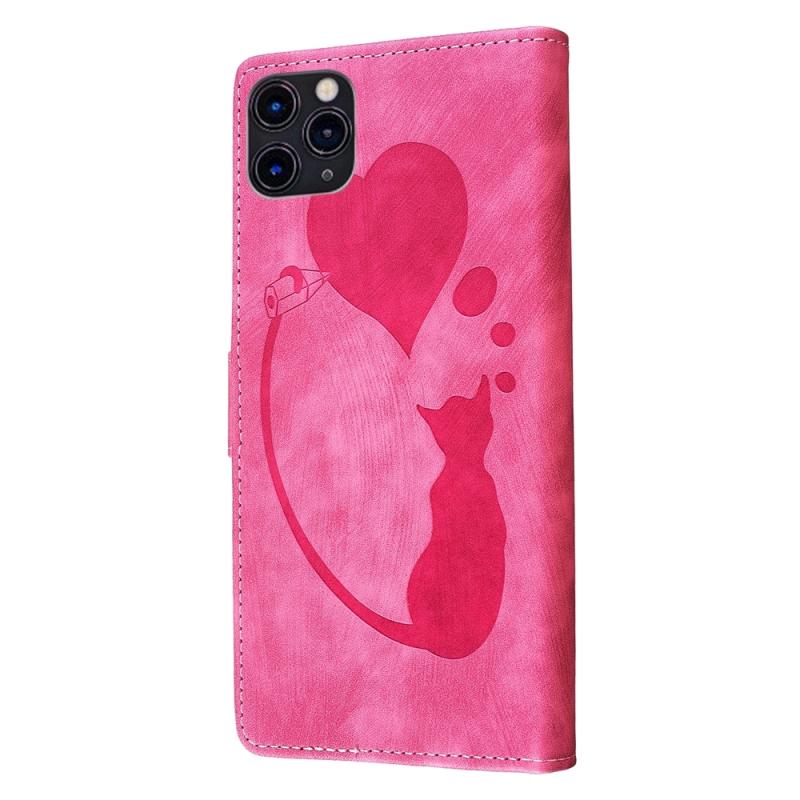 For iPhone 11 Pro Max Pen Heart Cat Embossed Leather Phone Case(Pink)