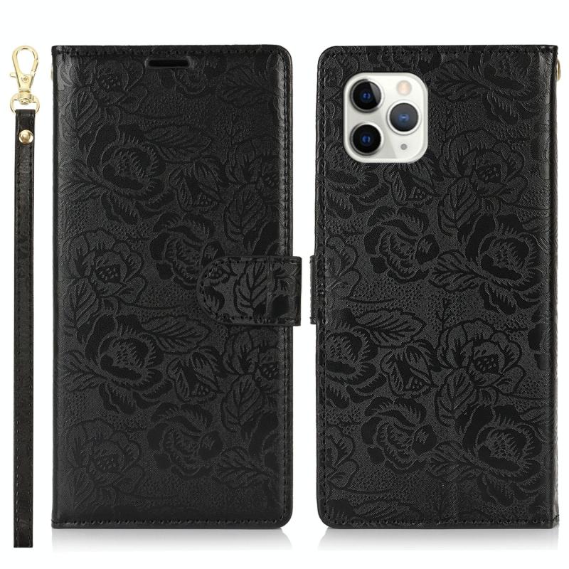 For iPhone 11 Pro Max Peony Flowers Imprint Leather Phone Case(Black)
