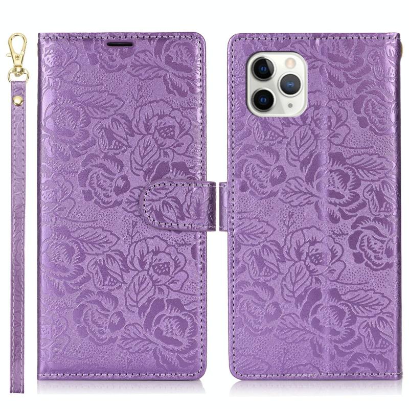 For iPhone 11 Pro Max Peony Flowers Imprint Leather Phone Case(Purple)