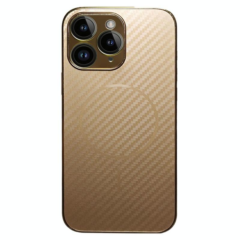 For iPhone 11 Pro Max Plating Carbon Fiber MagSafe Full Coverage Phone Case(Gold)