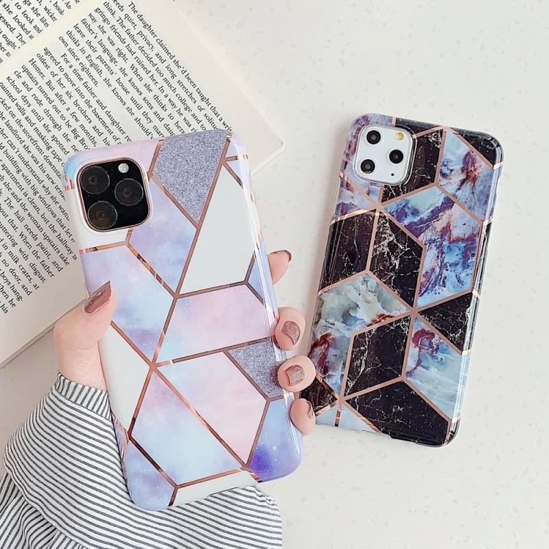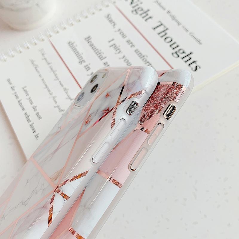 For iPhone 11 Pro Max Plating Colorful Geometric Pattern Mosaic Marble TPU Mobile Phone Case(Pink PJ1)