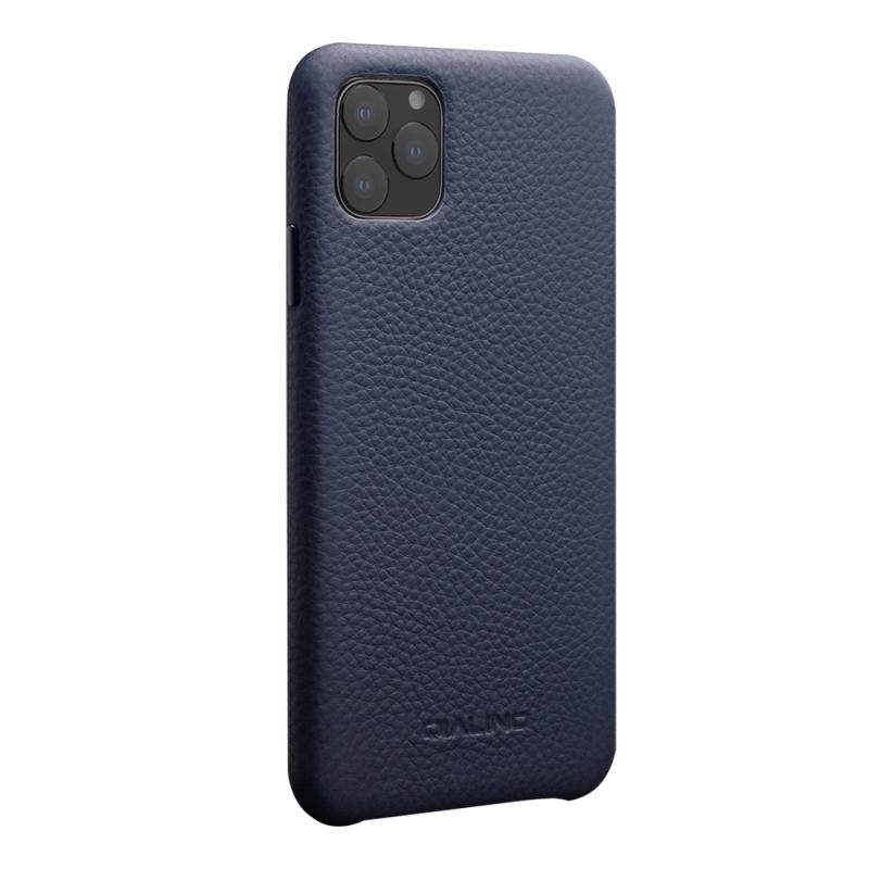 For iPhone 11 Pro Max QIALINO Shockproof Top-grain Leather Protective Case(Royal Blue) (QIALINO)