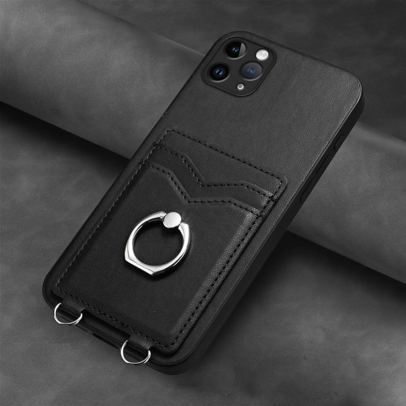 For iPhone 11 Pro Max R20 Ring Card Holder Phone Case(Black)