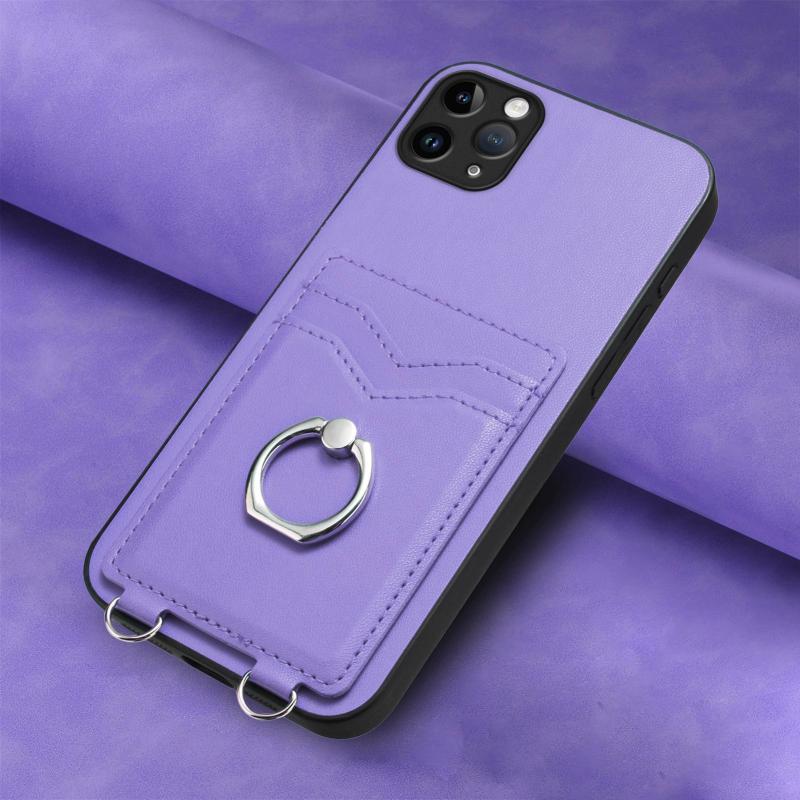 For iPhone 11 Pro Max R20 Ring Card Holder Phone Case(Purple)