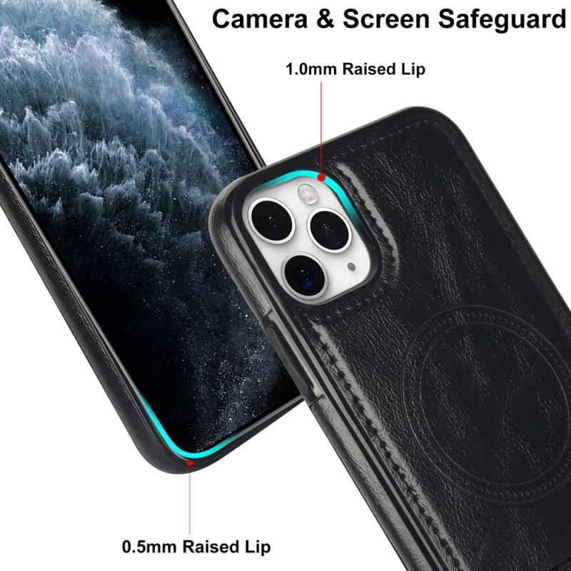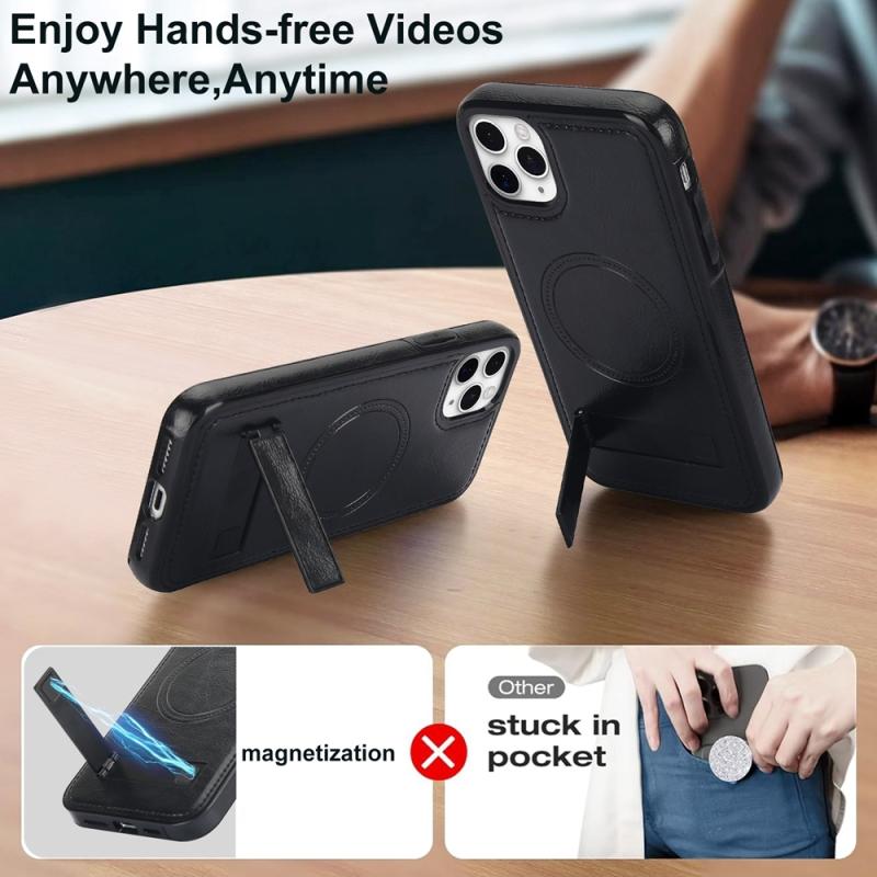 For iPhone 11 Pro Max Retro Leather Invisible Stand MagSafe Phone Case(Black)