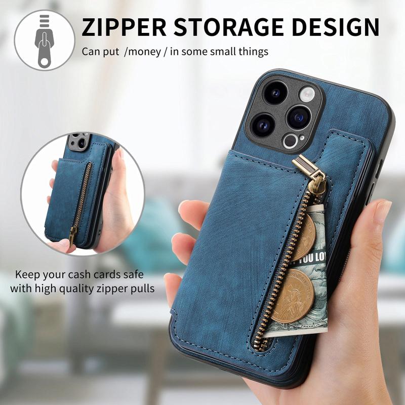 2. Zipper Wallet Function: Can store credit cards, ID cards, business cards, cash, and bills.