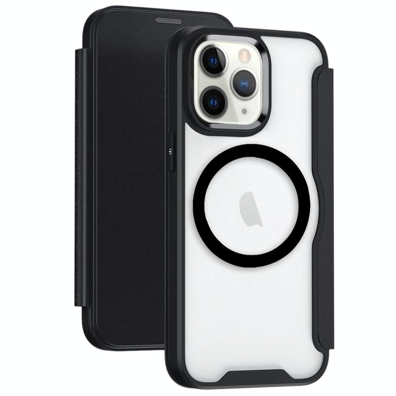 For iPhone 11 Pro Max RFID Blocking Adsorption Flip MagSafe Leather Phone Case(Black)