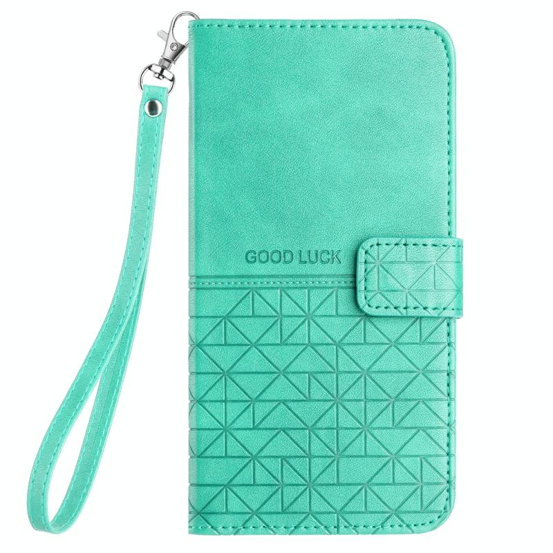 For iPhone 11 Pro Max Rhombic Texture Leather Phone Case with Lanyard(Green)