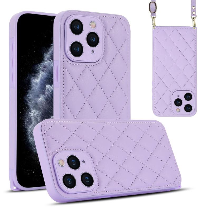 For iPhone 11 Pro Max Rhombic Texture Phone Case with Dual Lanyard(Purple)