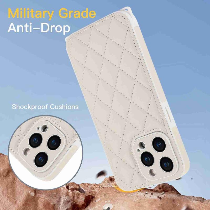 For iPhone 11 Pro Max Rhombic Texture Phone Case with Dual Lanyard(White)