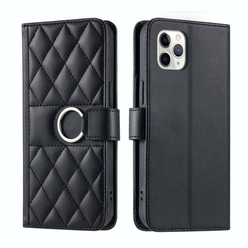 For iPhone 11 Pro Max Ring Buckle Rhombic Leather Phone Case(Black)