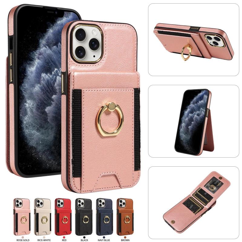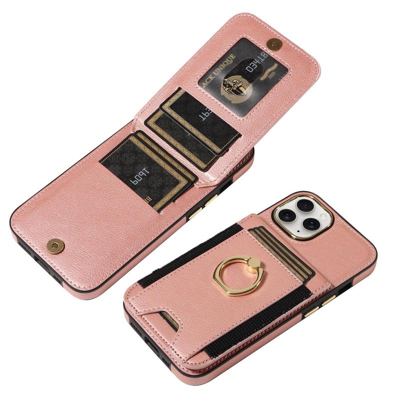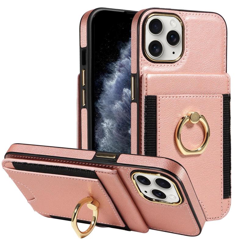 For iPhone 11 Pro Max Ring Multifunctional Vertical Flip Wallet Back Cover Leather Phone Case(Rose Gold)