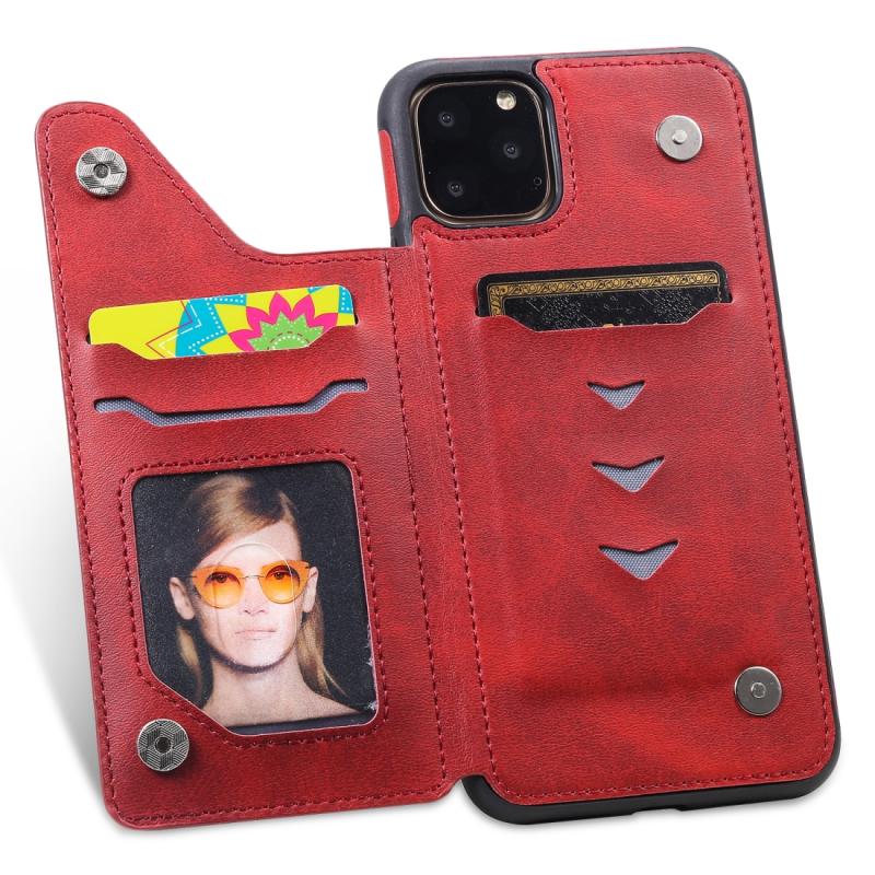 For iPhone 11 Pro Max Shockproof Calf Texture Protective Case with Holder & Card Slots & Frame(Red)