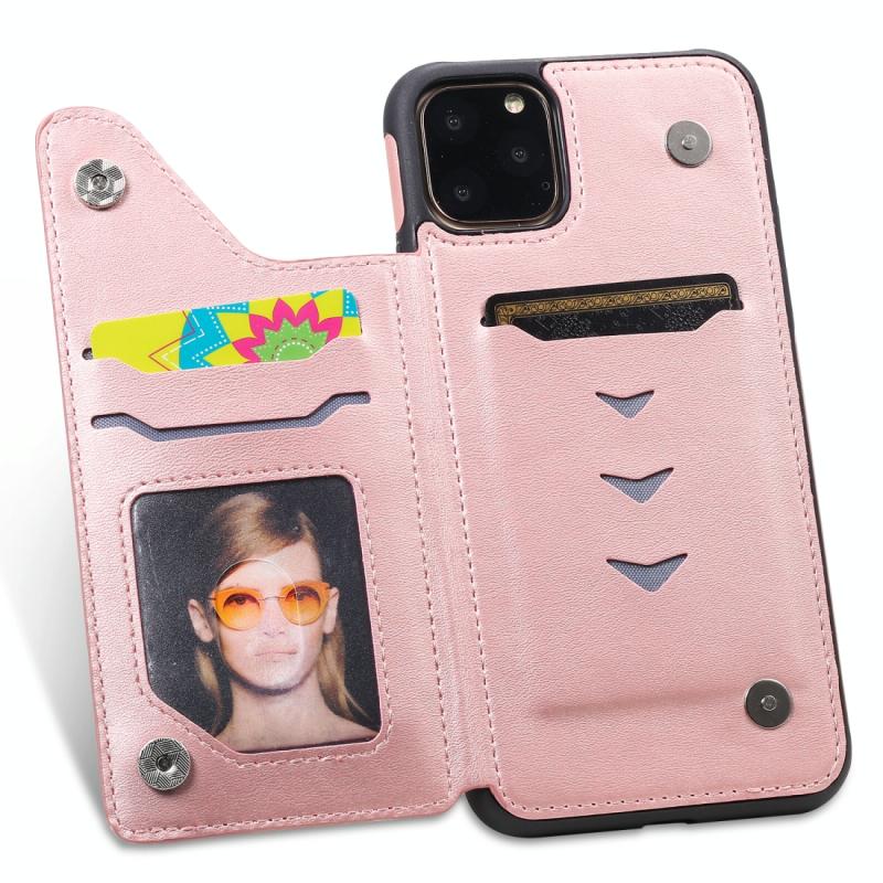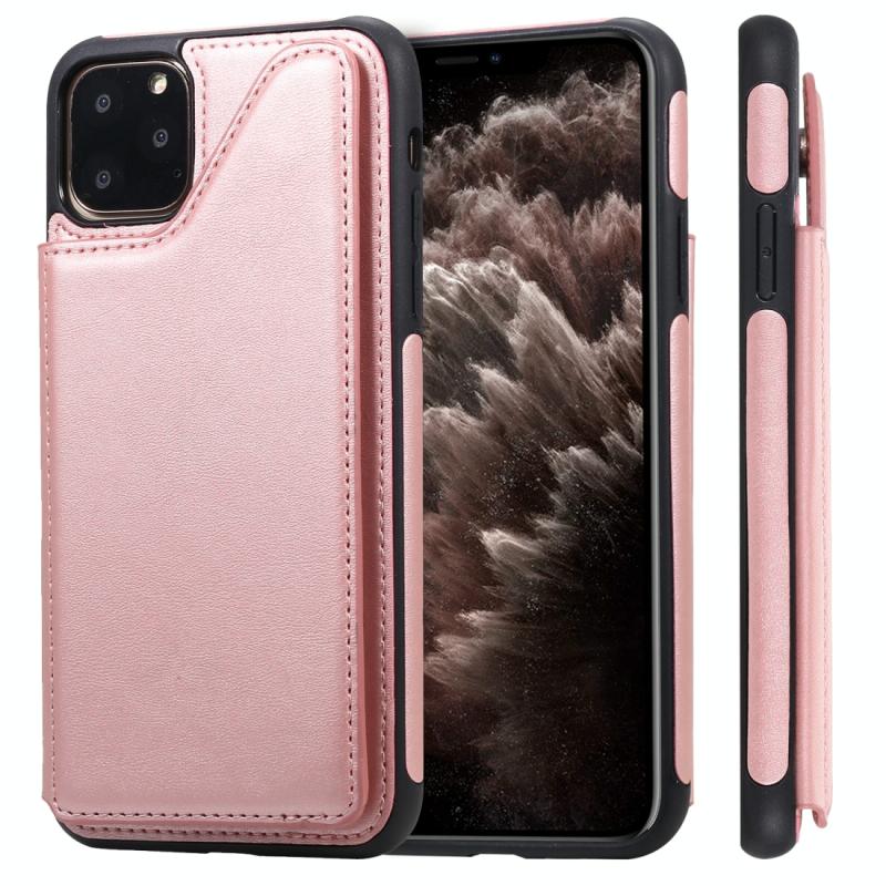 For iPhone 11 Pro Max Shockproof Calf Texture Protective Case with Holder & Card Slots & Frame(Rose Gold)