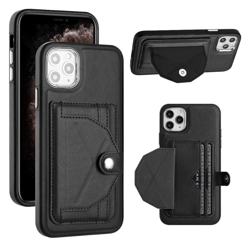 For iPhone 11 Pro Max Shockproof Leather Phone Case with Card Holder(Black)