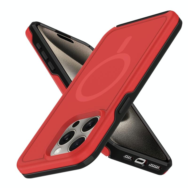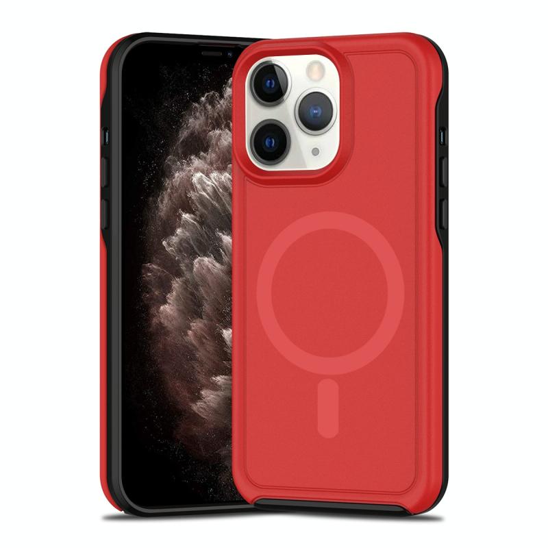 For iPhone 11 Pro Max Shockproof MagSafe Armor PC Hybrid TPU Phone Case(Red+Black)