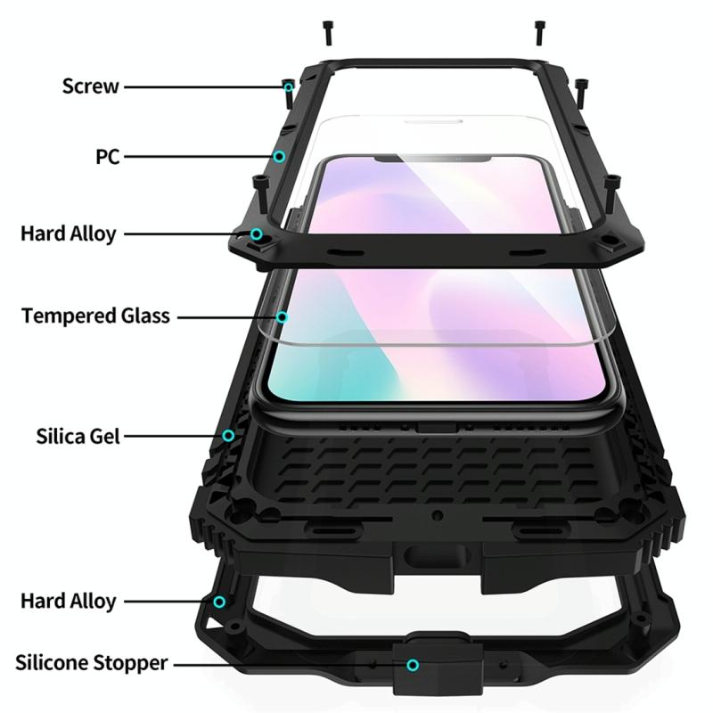 For iPhone 11 Pro Max Shockproof Waterproof Dust-proof Metal + Silicone Protective Case with Holder(Black)
