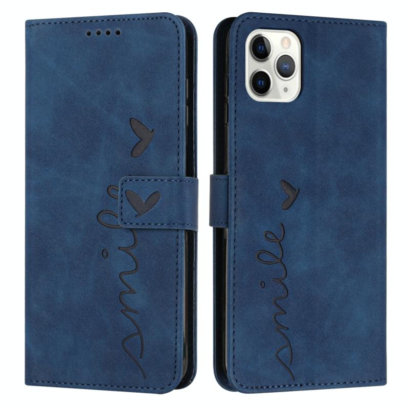 For iPhone 11 Pro Max Skin Feel Heart Pattern Leather Phone Case (Blue)