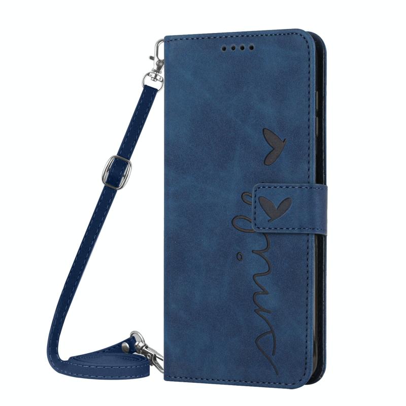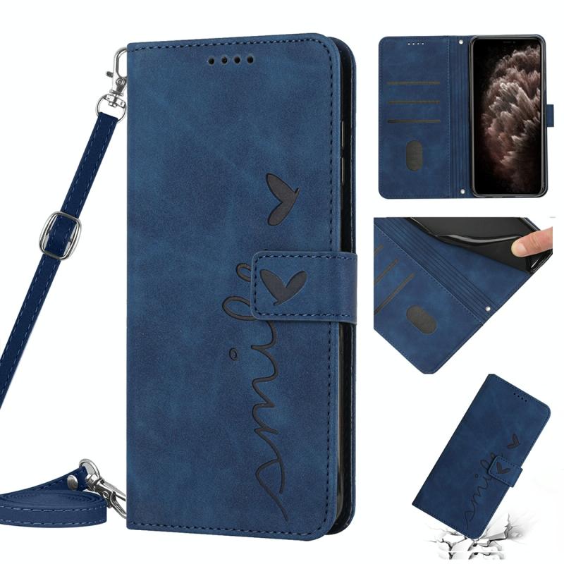 For iPhone 11 Pro Max Skin Feel Heart Pattern Leather Phone Case With Lanyard (Blue)