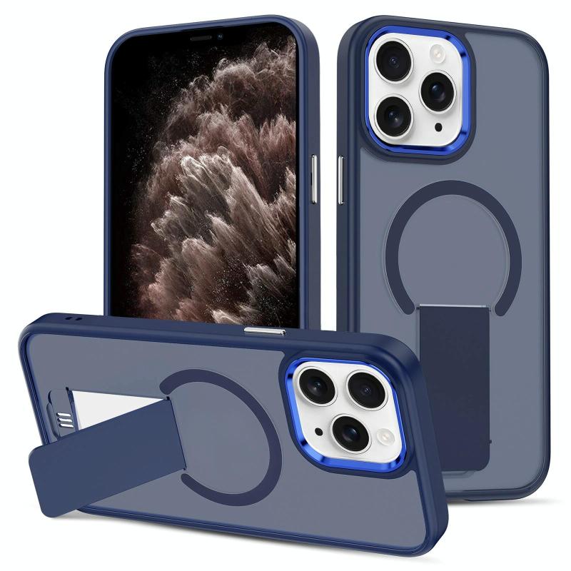 For iPhone 11 Pro Max Skin Feel Invisible Kickstand MagSafe Phone Case(Blue)
