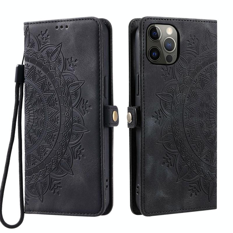 For iPhone 11 Pro Max Skin Feel Totem Embossed Leather Phone Case(Black)