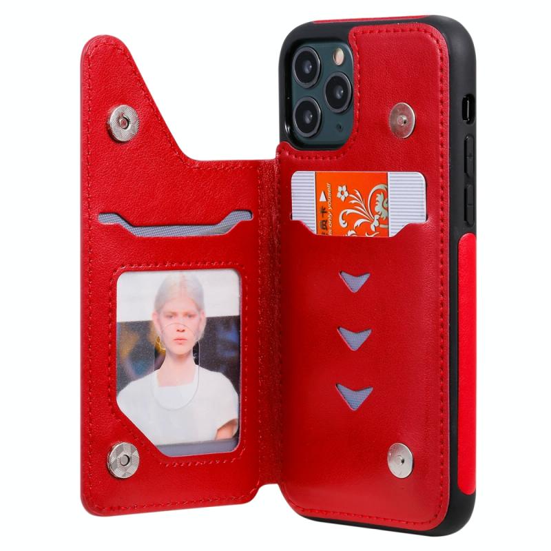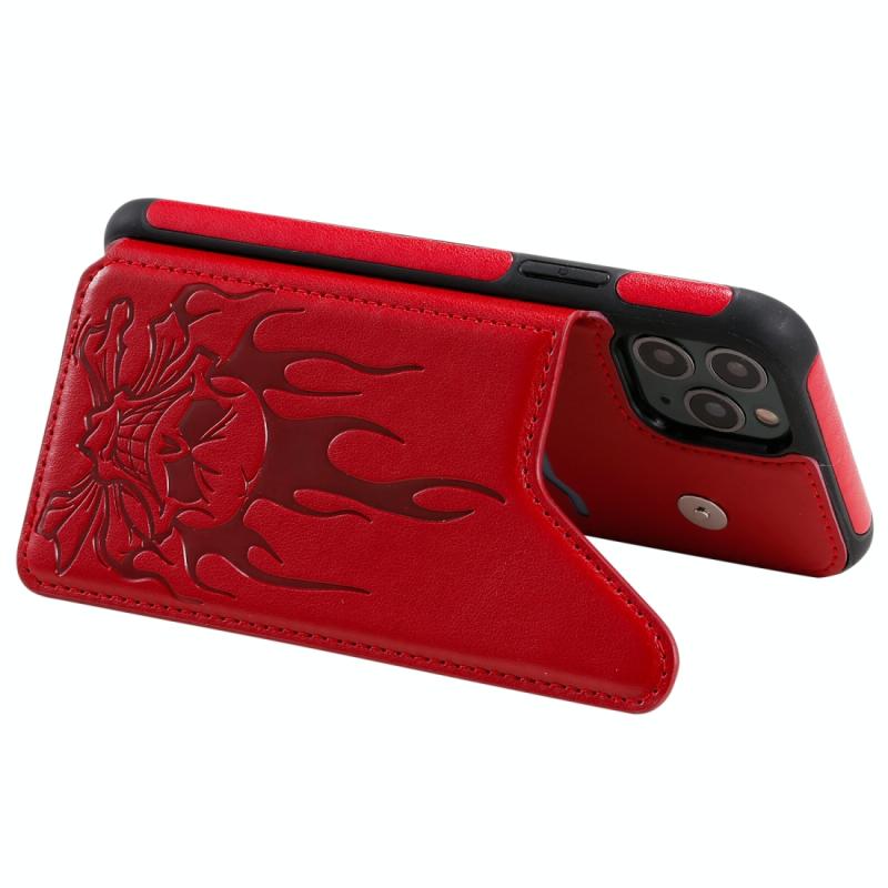 For iPhone 11 Pro Max Skull Head Embossing Pattern Shockproof Protective Case with Holder & Card Slots & Wallet(Red)