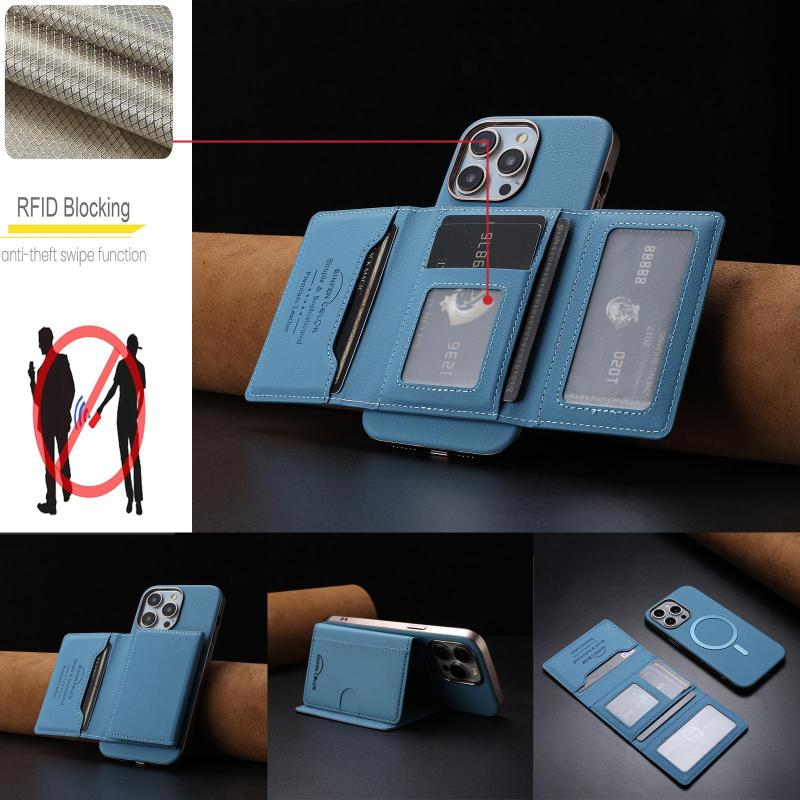 2. Magnetic Tri-Fold Wallet Design: Features a horizontal fold with a strong magnetic closure for easy access and secure storage.