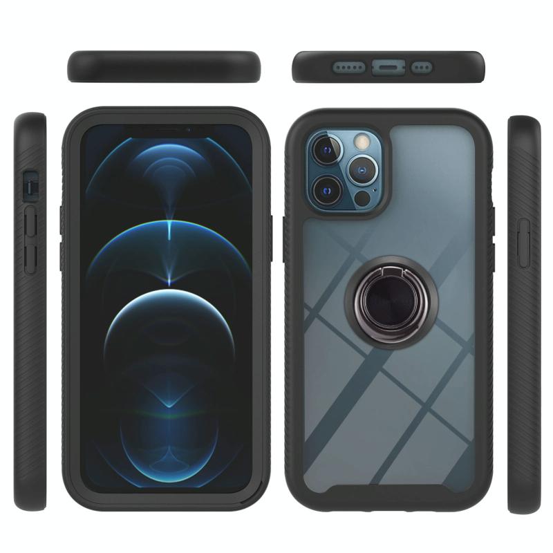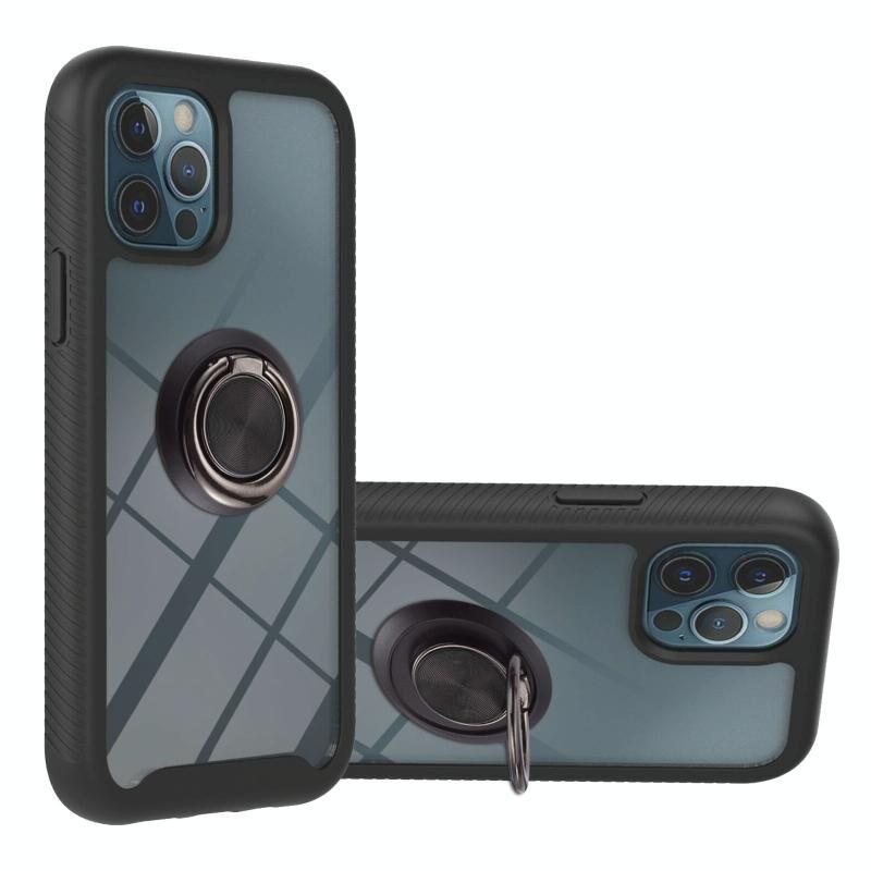 For iPhone 11 Pro Max Starry Sky Solid Color Series Shockproof PC + TPU Protective Case with Ring Holder & Magnetic Function (Black)