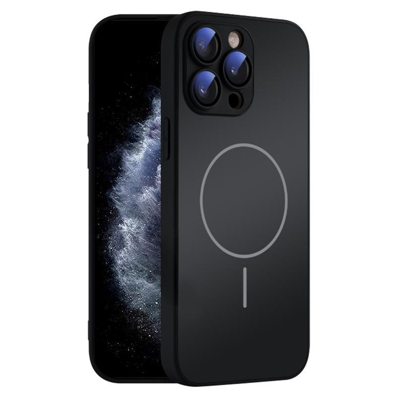 For iPhone 11 Pro Max Thin Circle MagSafe Skin-feel AG Glass Phone Case(Black)