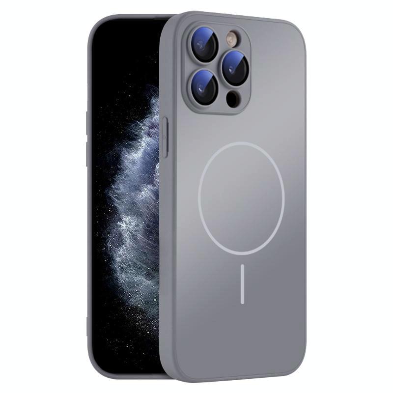 For iPhone 11 Pro Max Thin Circle MagSafe Skin-feel AG Glass Phone Case(Titanium Gray)