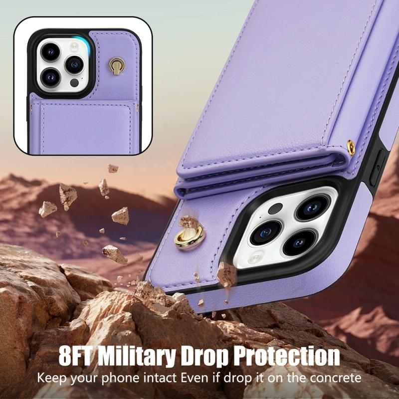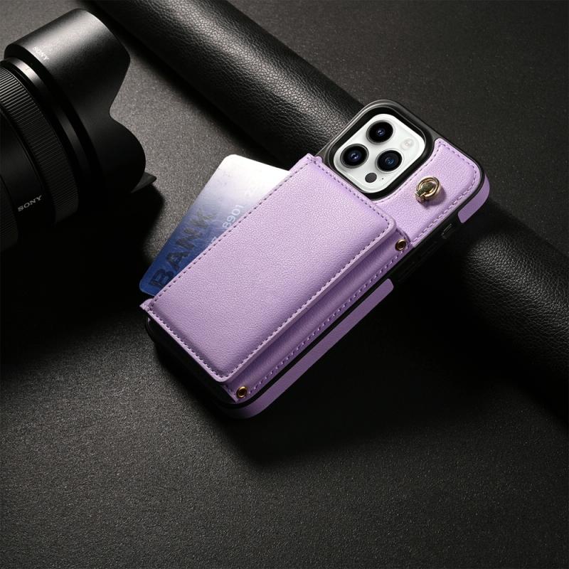 For iPhone 11 Pro Max Three Fold Card Bag Phone Case with Long Lanyard(Purple)