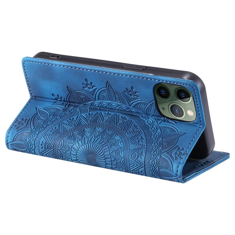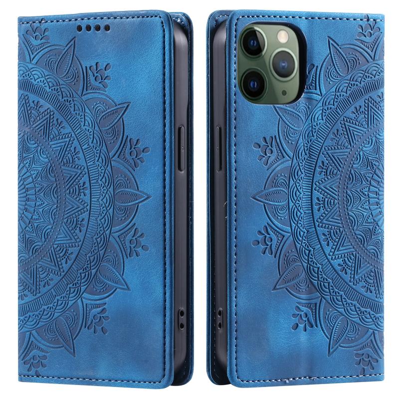 For iPhone 11 Pro Max Totem Embossed Magnetic Leather Phone Case(Blue)