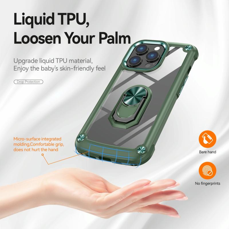 For iPhone 11 Pro Max TPU + PC Lens Protection Phone Case with Ring Holder(Green)