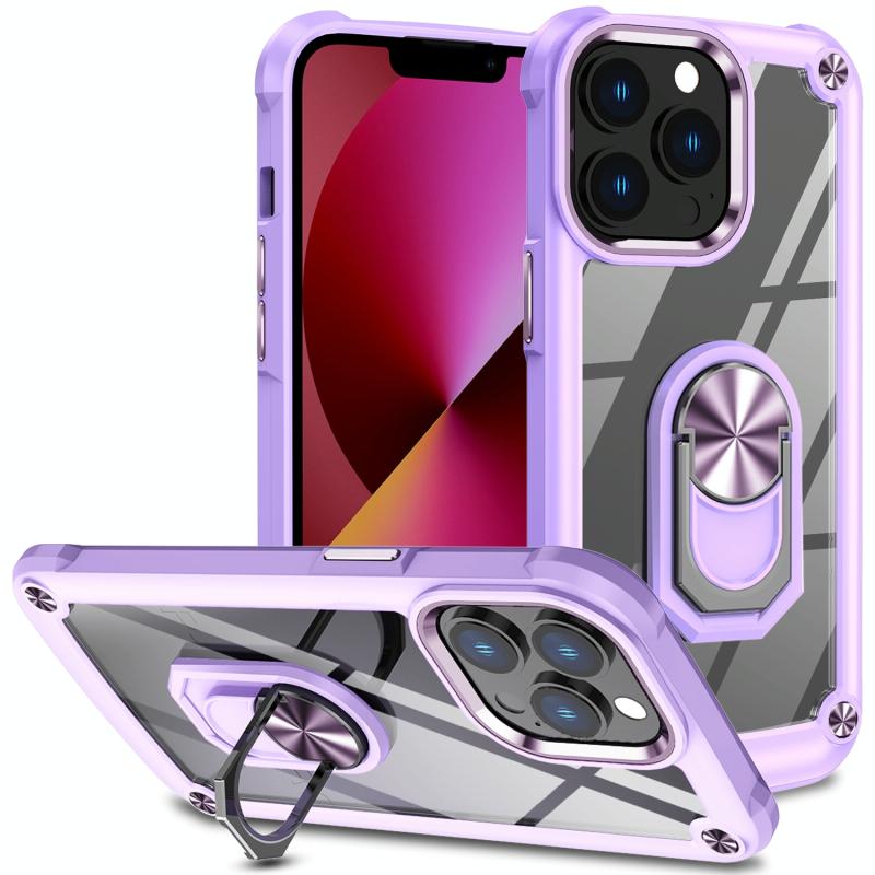 For iPhone 11 Pro Max TPU + PC Lens Protection Phone Case with Ring Holder(Purple)