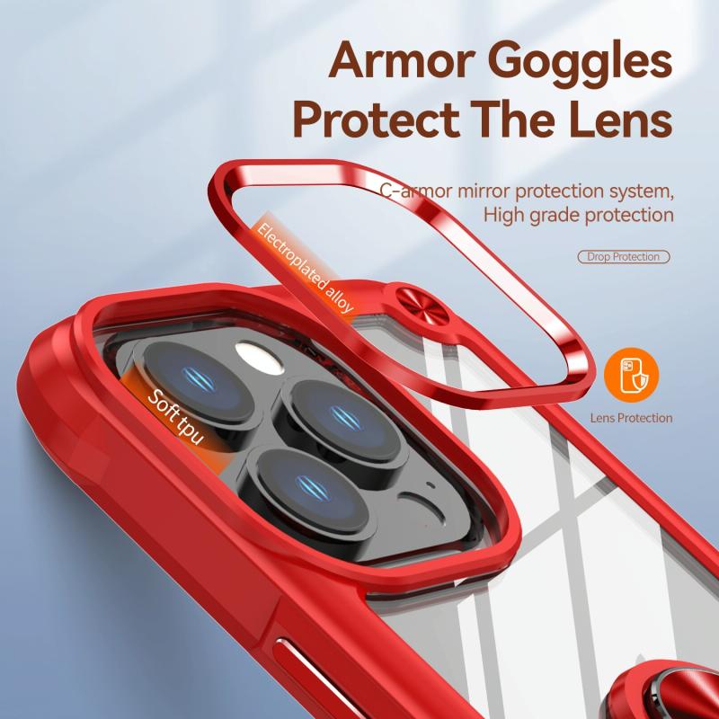 For iPhone 11 Pro Max TPU + PC Lens Protection Phone Case with Ring Holder(Red)