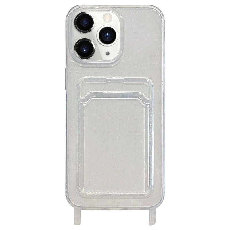 For iPhone 11 Pro Max Transparent Card Slot TPU Phone Case with Lanyard Hole