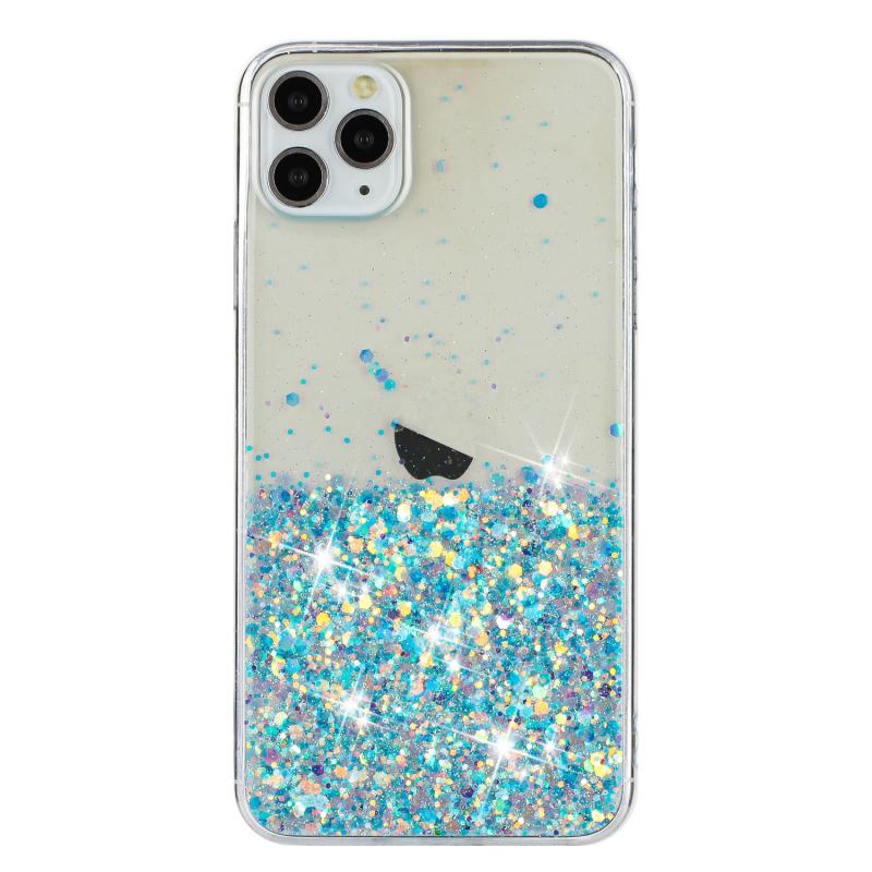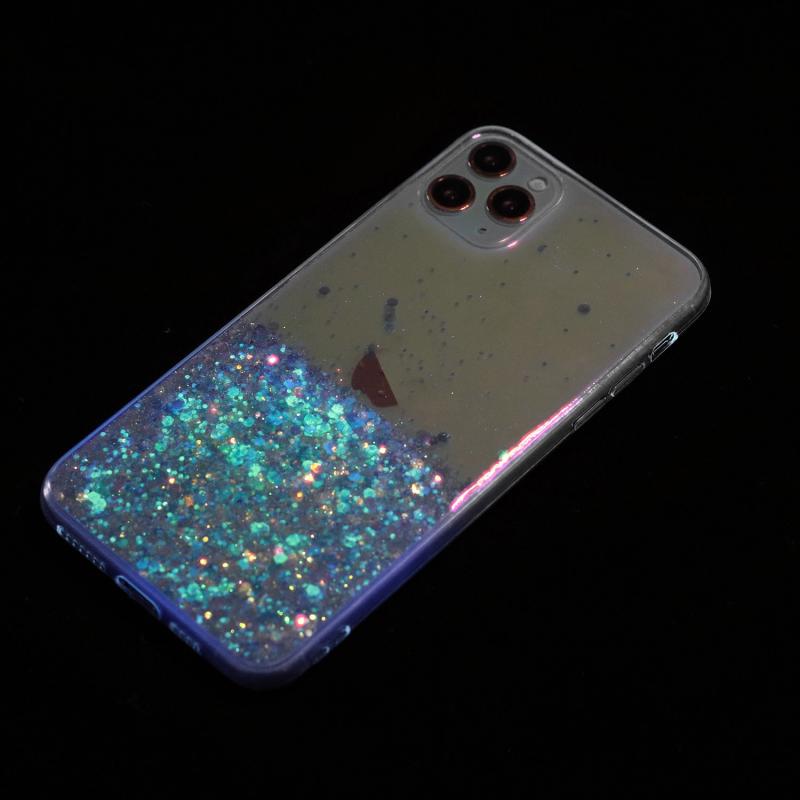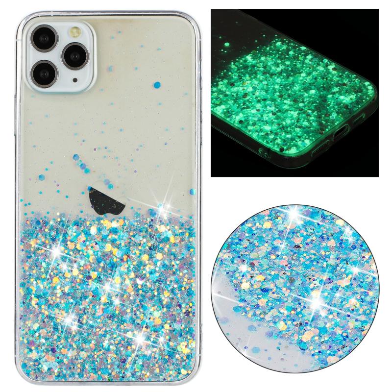 For iPhone 11 Pro Max Transparent Frame Noctilucent Glitter Powder TPU Phone Case(Blue)