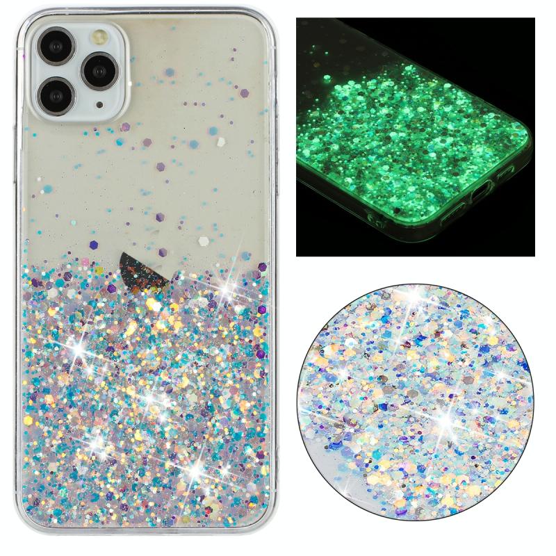For iPhone 11 Pro Max Transparent Frame Noctilucent Glitter Powder TPU Phone Case(White)