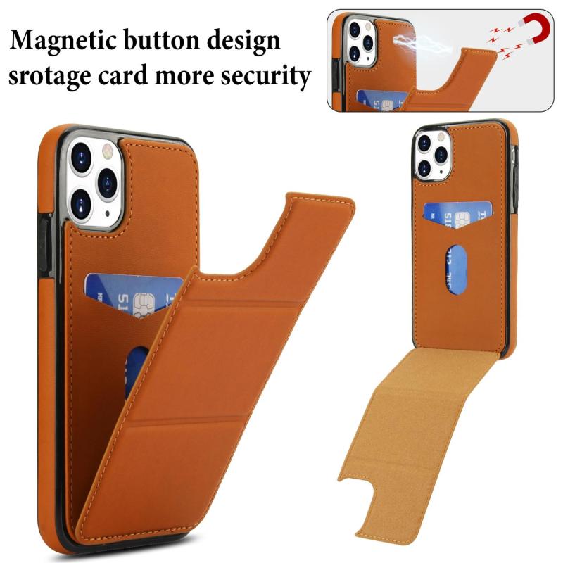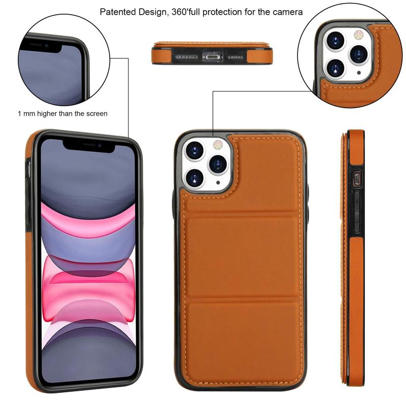 For iPhone 11 Pro Max Tri-fold Holder Leather Phone Case with Card Slot(Brown)