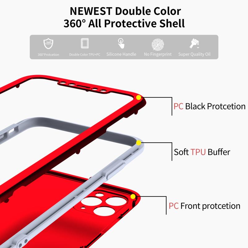 For iPhone 11 Pro Max Two Color Full Protective 3-in-1 Phone Case(Red)