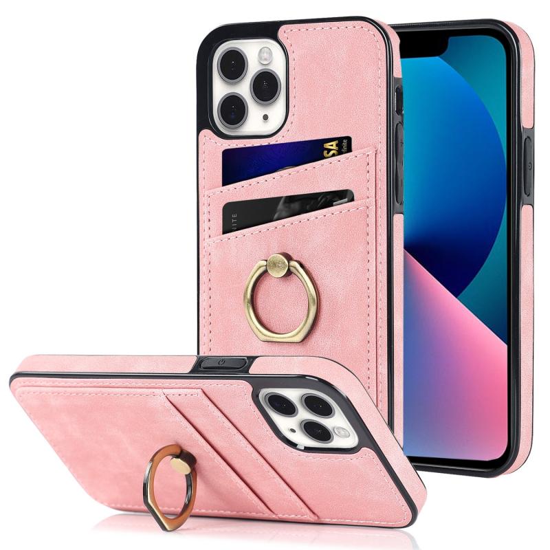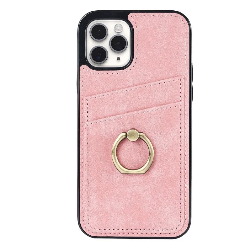 For iPhone 11 Pro Max Vintage Patch Leather Phone Case with Ring Holder (Pink)