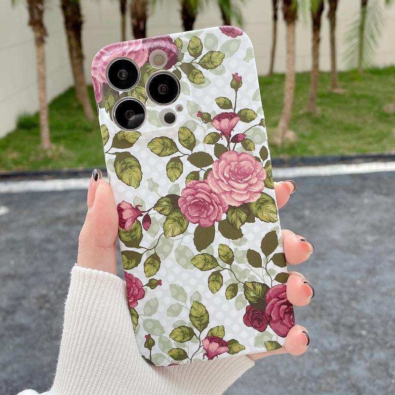 For iPhone 11 Pro Max Water Sticker Flower Pattern PC Phone Case(White Backgroud Pink Rose)