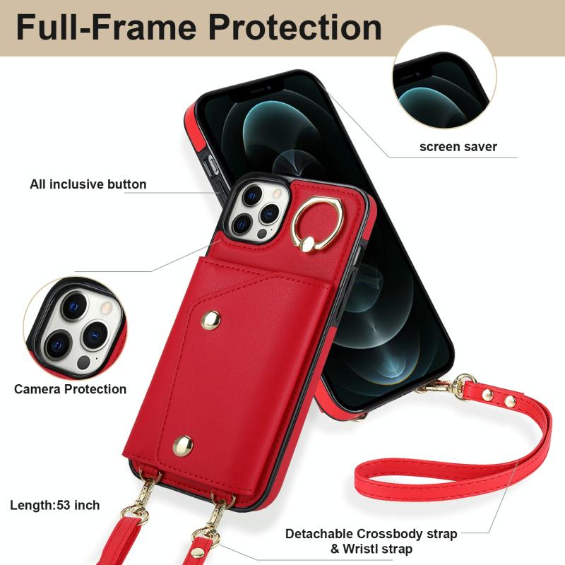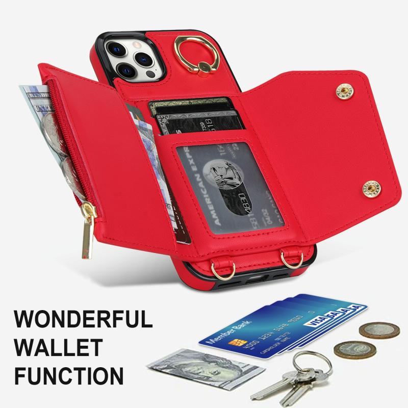 For iPhone 11 Pro Max Zipper Card Bag Phone Case with Dual Lanyard(Red)