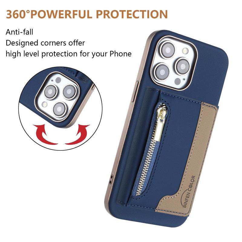 For iPhone 11 Pro Max Zipper Horizontal Magnetic Card Bag RFID MagSafe Phone Case(Dark Blue)